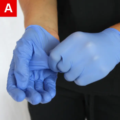 - Pull upward slightly until the glove comes off smoothly (inside out).