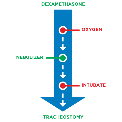 PALS management of respiratory distress/failure is adjusted based on the severity of the current condition. For example, mild asthma is treated with bronchodilator inhalers, but severe asthma (status asthmaticus) may require ET intubation. The provider must continually assess the person’s current needs and adjust care accordingly.