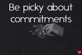 A friend wants to meet for a study group in a library across campus, miles from where you are. Instead of you having to meet them miles away, be picky about your commitments and meet at a study spot in the middle for both of you! Learn to compromise with yourself, your friends and family about commitments. Crazy Uncle Joe can come the weekend after finals, not before!