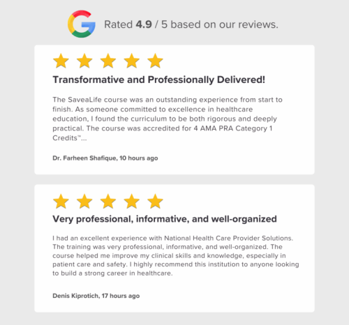 Our courses are made to fit the demands of your busy professional life. Many healthcare professionals are new to the concept of an online certification course because until recently, online certification was not an option. Our course adheres to the latest ILCOR Standards and Guidelines and are Joint Commission (JCAHO) compliant. Save a Life Certifications has a national acceptance rate of more than 98%.